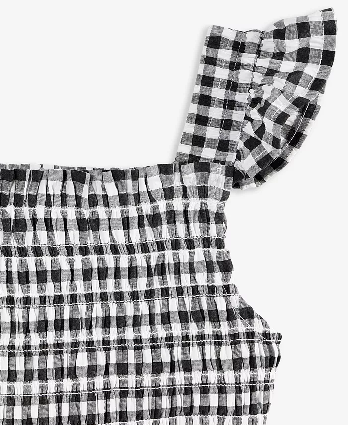 Квадратный вырез Оборчатые бретели Тянет на Присборенный лиф; принт в клетку; оборки на шее и подоле. Полиэстер/хлопок/спандекс Можно стирать в стиральной машине