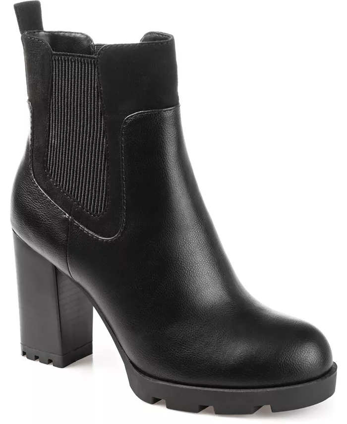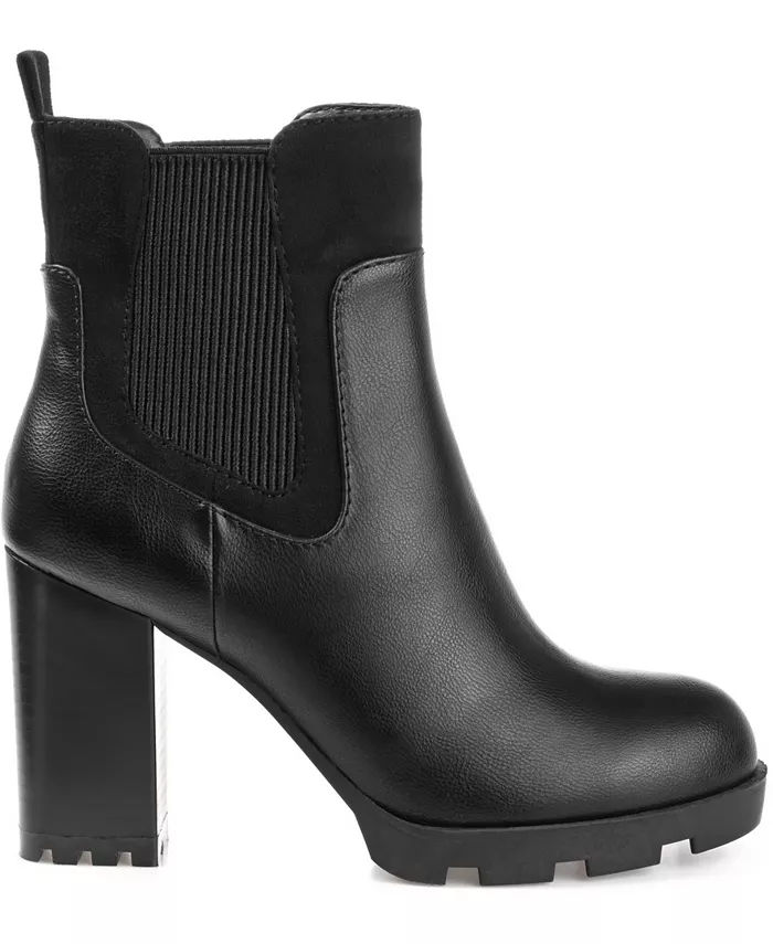 Дерзкий взгляд на ботинки Chelsea, Islana by Journee Collection. Эти современные ботинки имеют гибкую верхнюю часть из искусственной кожи с деталями и рифленую подошву на платформе. Стелька из пены True Comfort делает их удобными для ходьбы, а двойные эластичные вставки Gore на щиколотке позволяют легко надевать их.