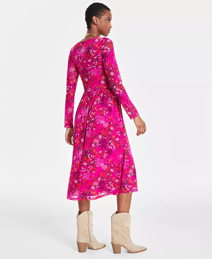 Приблизительно 47 дюймов в длину от центра спинки до подола. Длина указана для размера 4 и варьируется на 1/4 дюйма между размерами. Вырез горловины "лодочка" Миди: Длина ниже колена, до икры. Тянет на Мягкая сетка с цветочным принтом Длинные прозрачные рукава Без подкладки 92% нейлон, 8% спандекс Машинная стирка