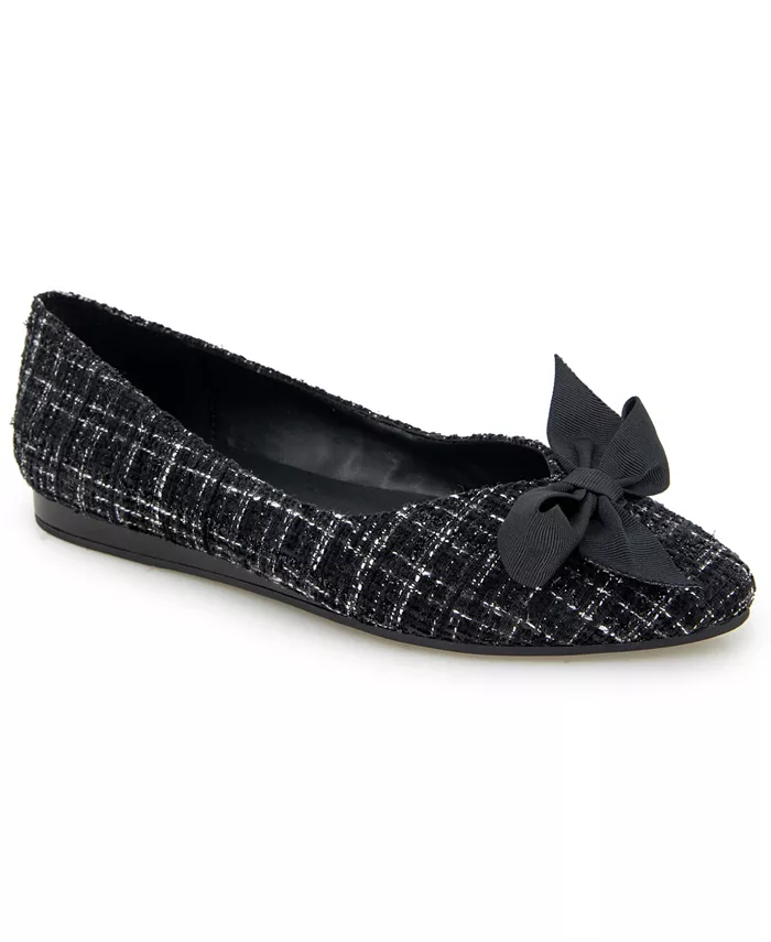 Текстурированная твидовая ткань подчеркивает элегантность туфель Kenneth Cole Reaction Lily Bow с острым носком и плоским верхом, украшенных очаровательным бантом из ленты.