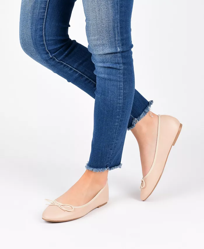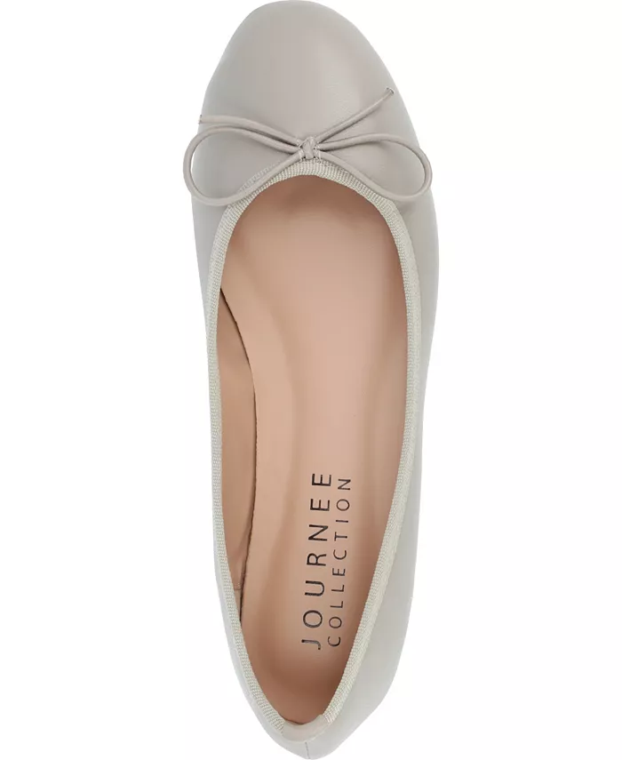 Выразите свой женственный стиль в современных балетках от Journee Collection. Эти стильные балетки имеют гладкий верх и трикотажную отделку. Классические круглые носки с изящными бантовыми акцентами и небольшими блочными каблуками завершают дизайн.