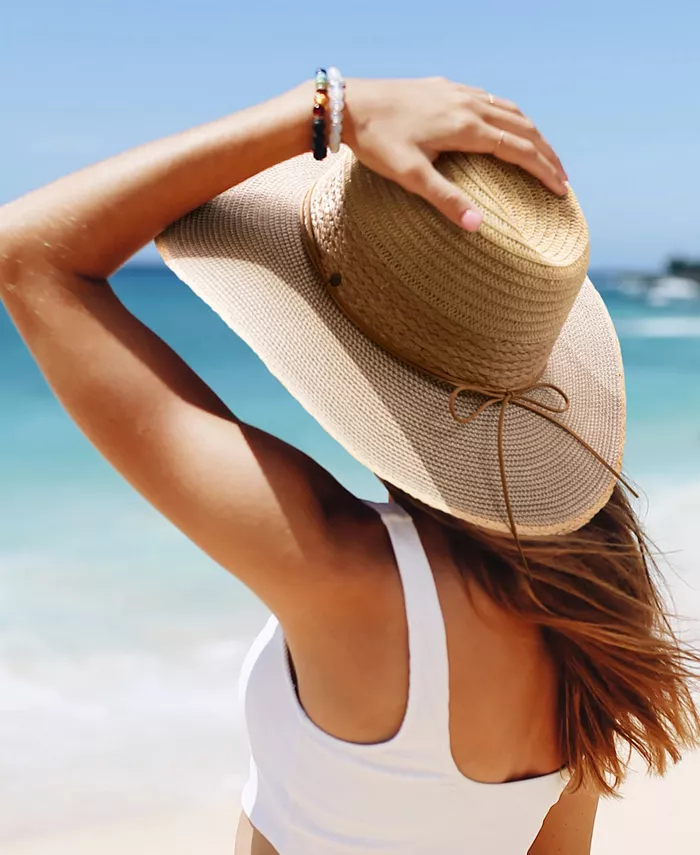 Модная и поцелованная солнцем, Valencia — широкополая федора с текстурой и стилем, которых хватит с избытком. Контрастная тканая смесь с декоративной двойной лентой из кожзаменителя добавит веселья вашему любимому летнему образу. Комфортная повязка на голову.
