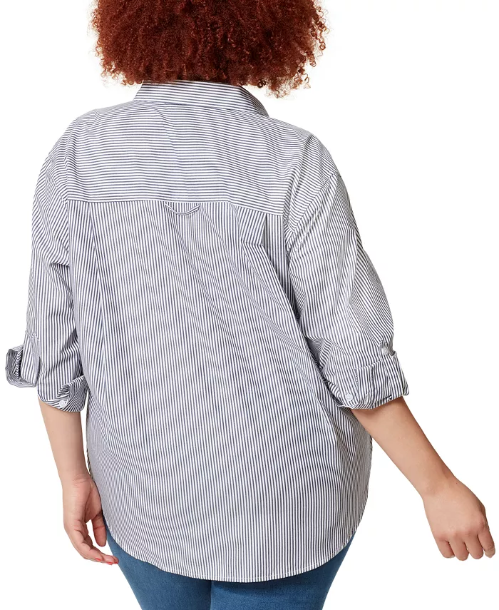 Эта рубашка большого размера из хлопка от Gloria Vanderbilt, застегивающаяся на пуговицы, имеет свободный крой, создающий непринужденный образ, и универсальные рукава с отворотами.
