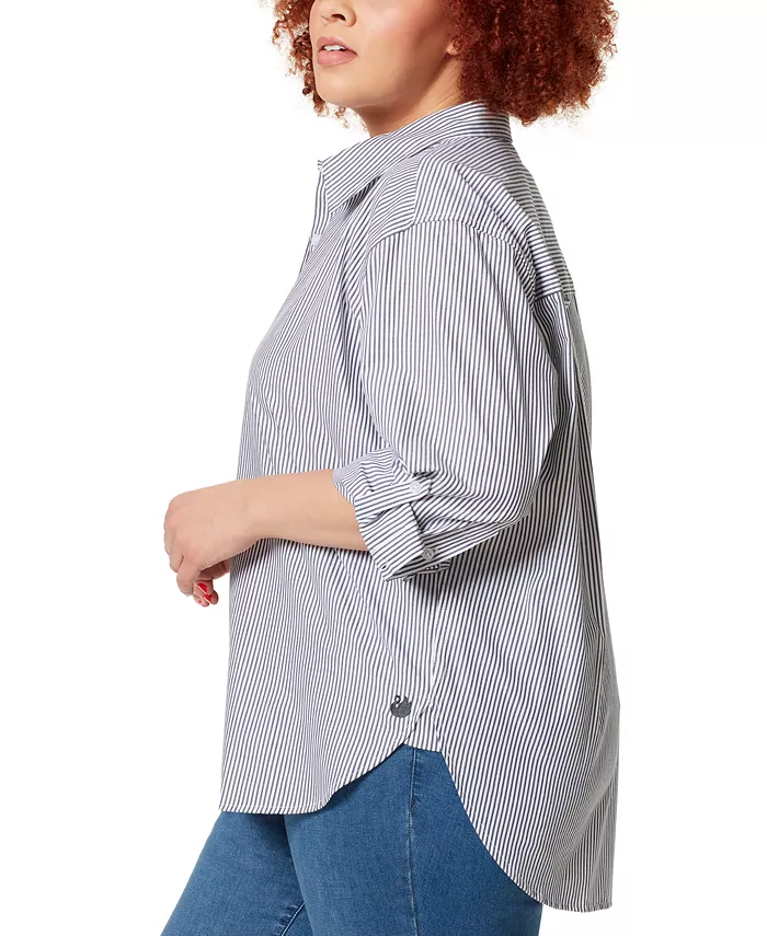 Эта рубашка большого размера из хлопка от Gloria Vanderbilt, застегивающаяся на пуговицы, имеет свободный крой, создающий непринужденный образ, и универсальные рукава с отворотами.
