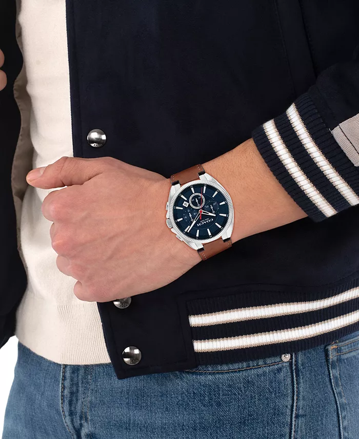 Мужские наручные часы Jackson Saddle с кожаным ремешком, 45 мм COACH