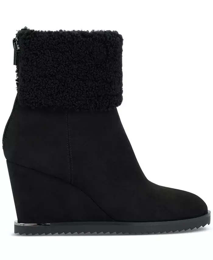 Кудрявая искусственная овчина добавляет мягкого тепла гладким танкеткам, делая сапоги Powell от DKNY идеальным вариантом для холодной погоды.