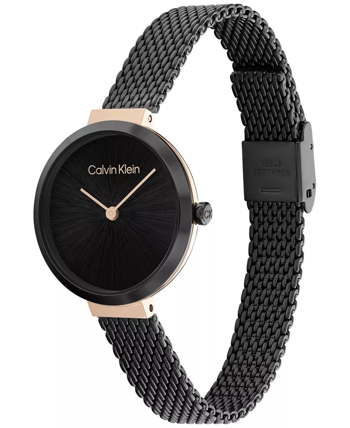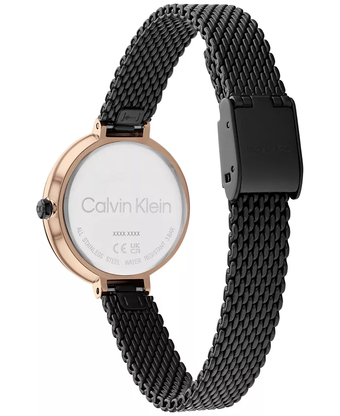 Черные наручные часы 28 мм со стальным сетчатым браслетом Calvin Klein
