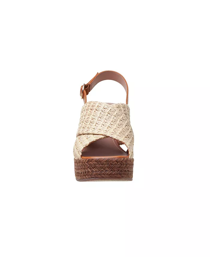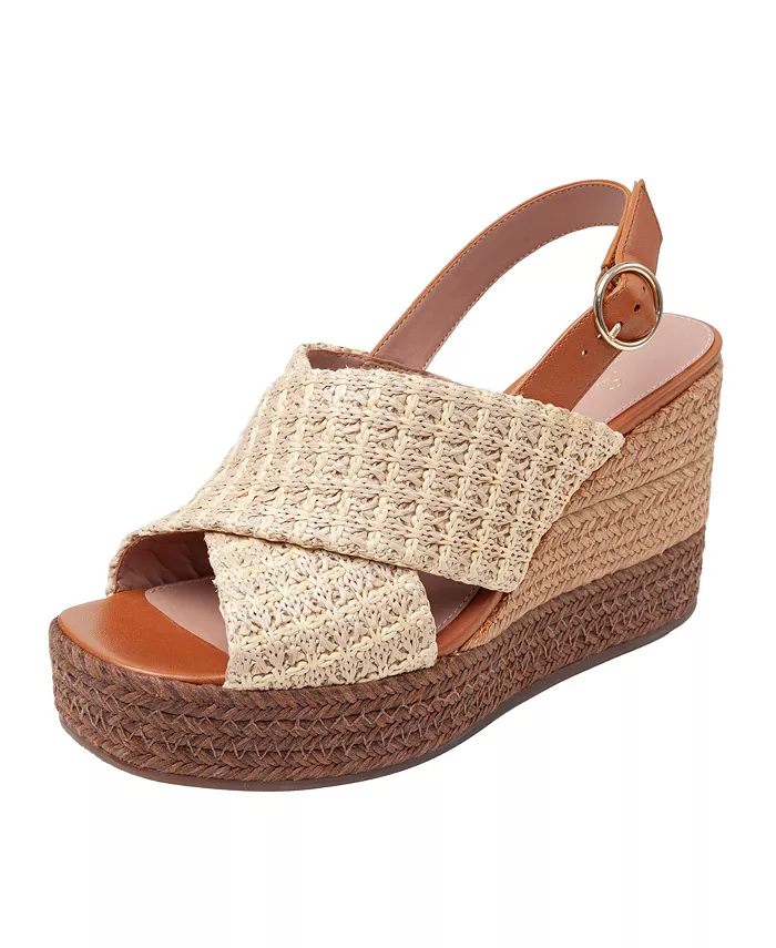 Выразите свою индивидуальность в этих модных туфлях на танкетке с открытой пяткой из смеси рафии и кожи.