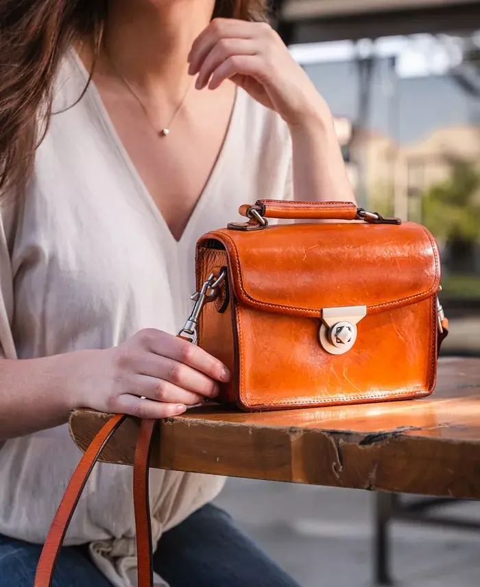 Внешние особенности включают фурнитуру серебристого цвета и верхнюю ручку.