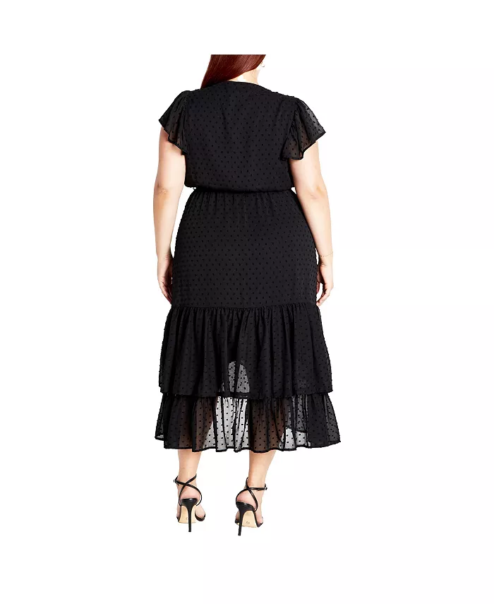 Платье миди с рюшами Plus Size Midi Frill Dee Tiered Dress CITY CHIC, черный 13 837₽
