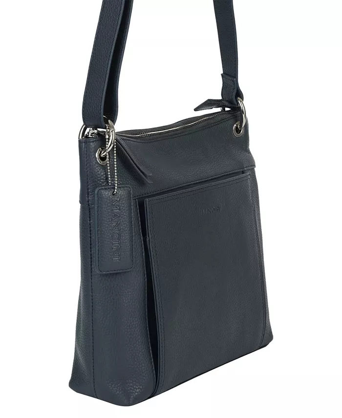 Кожаная сумка-кроссбоди Pebble Trish с органайзером Mancini, синий
