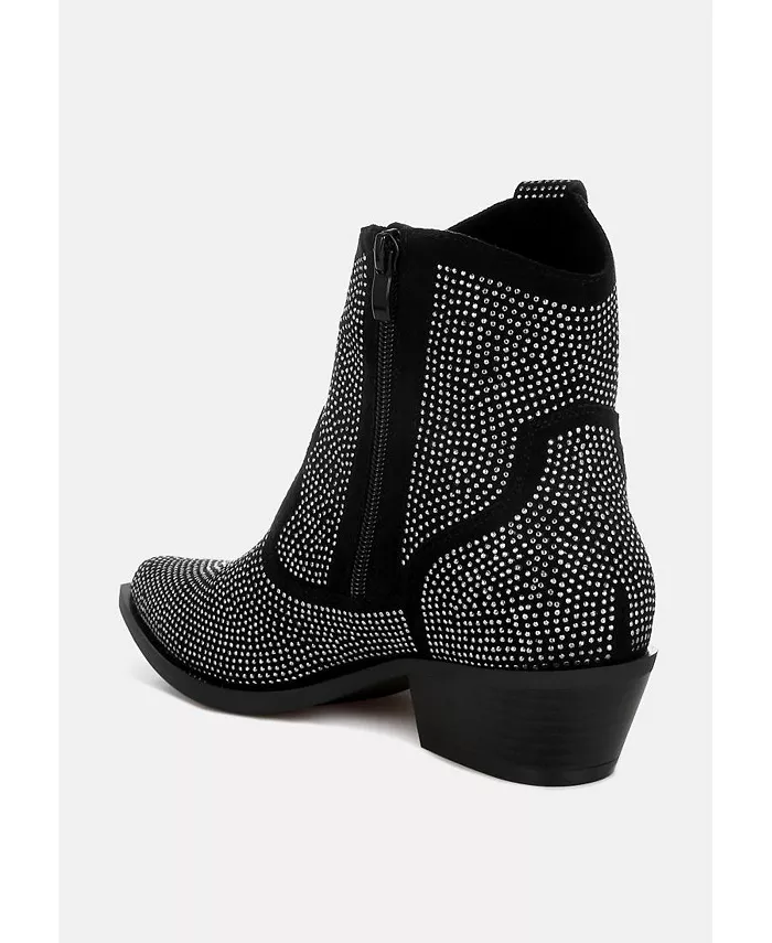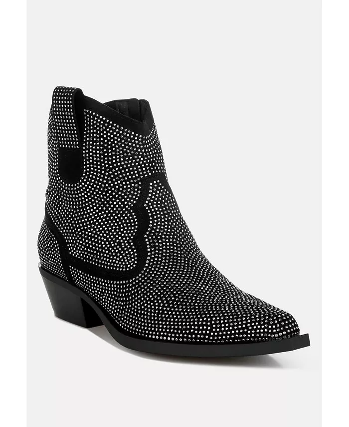 Ковбойские ботильоны — это ослепительное зрелище с украшениями из стразов, которые мгновенно настраивают вас на танцы всю ночь. Сочетайте их с великолепным мини-платьем для шикарного и гламурного образа. Ботильоны удобны благодаря низкому блочному каблуку и удобной мягкой стельке.