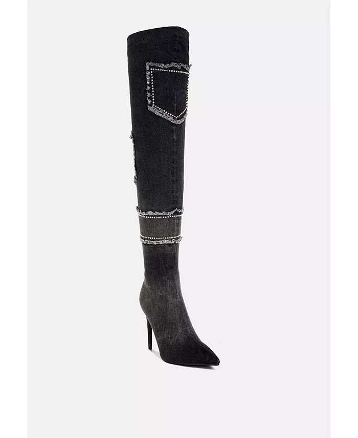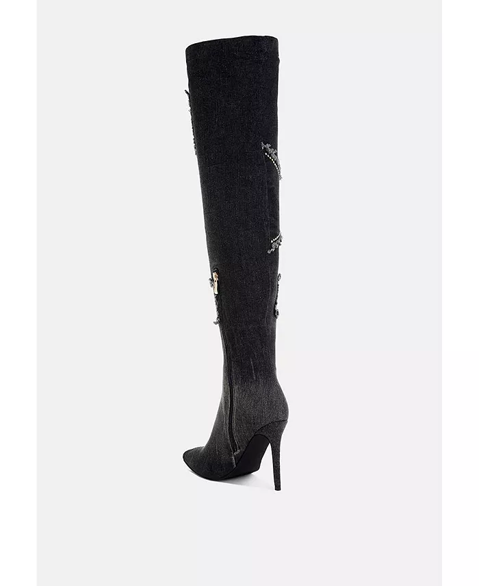 Ботфорты Eilish Rhinestones из денима с камнями London Rag, черный