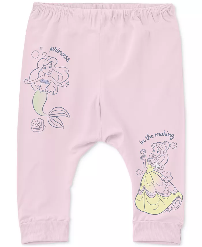Брюки: надеваются без застежек; спереди графика «Принцесса в процессе становления» Ариэль и Белль; ребристые края