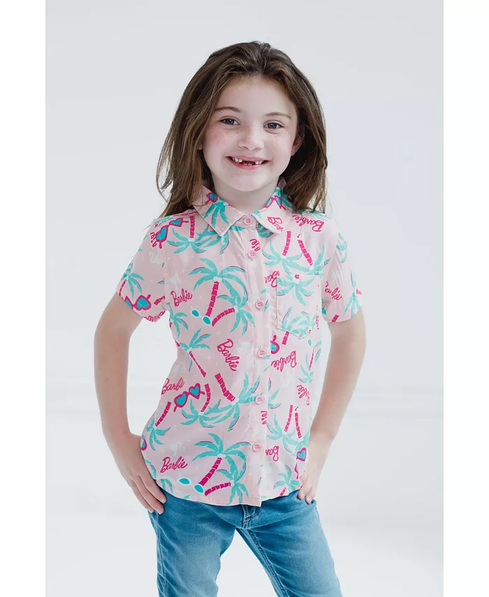 Официально лицензированная рубашка для больших девочек Барби с воротником и короткими рукавами на пуговицах