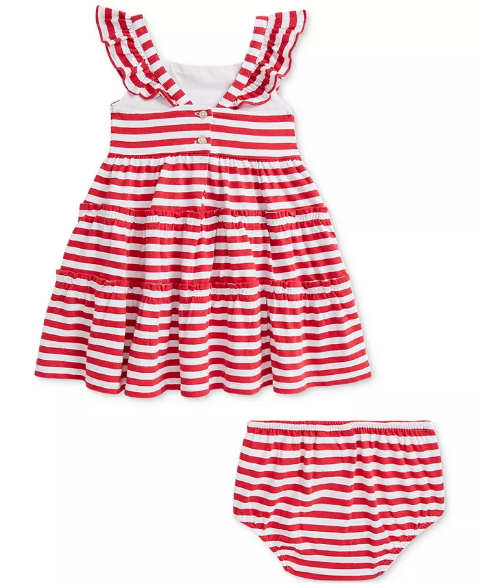 Оборки и полосы в морском стиле делают это хлопковое облегающее платье от Polo Ralph Lauren прекрасным выбором для теплых месяцев.