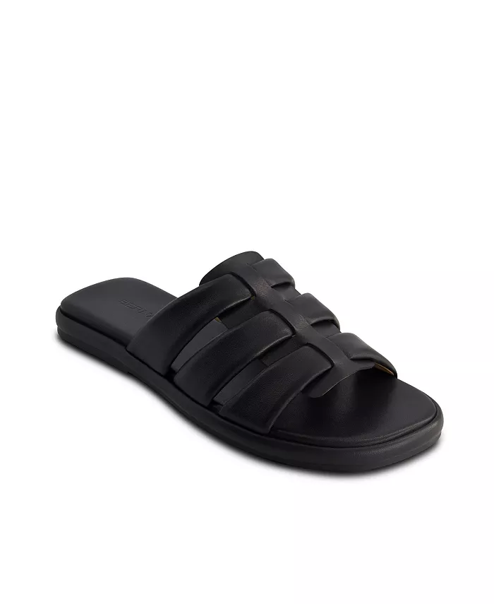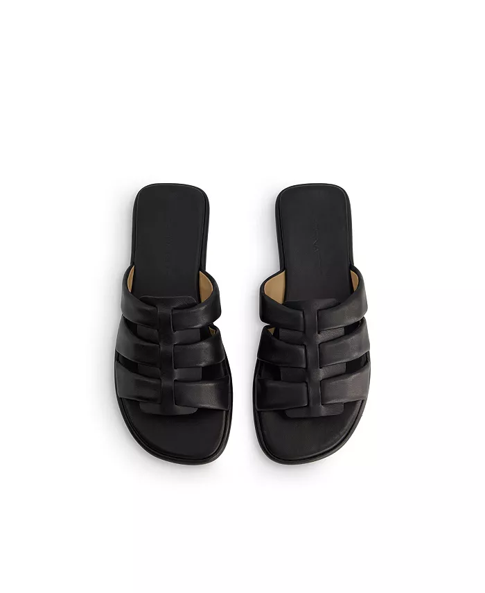 Переосмыслите возможности. Эти изысканные сандалии-слайдеры развивают базовый силуэт, дополняя его мягким верхом с тремя ремешками и обертывая мягкую подошву мягкой кожей растительного дубления.
