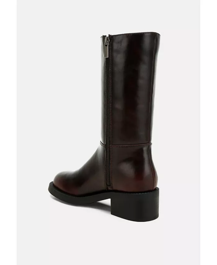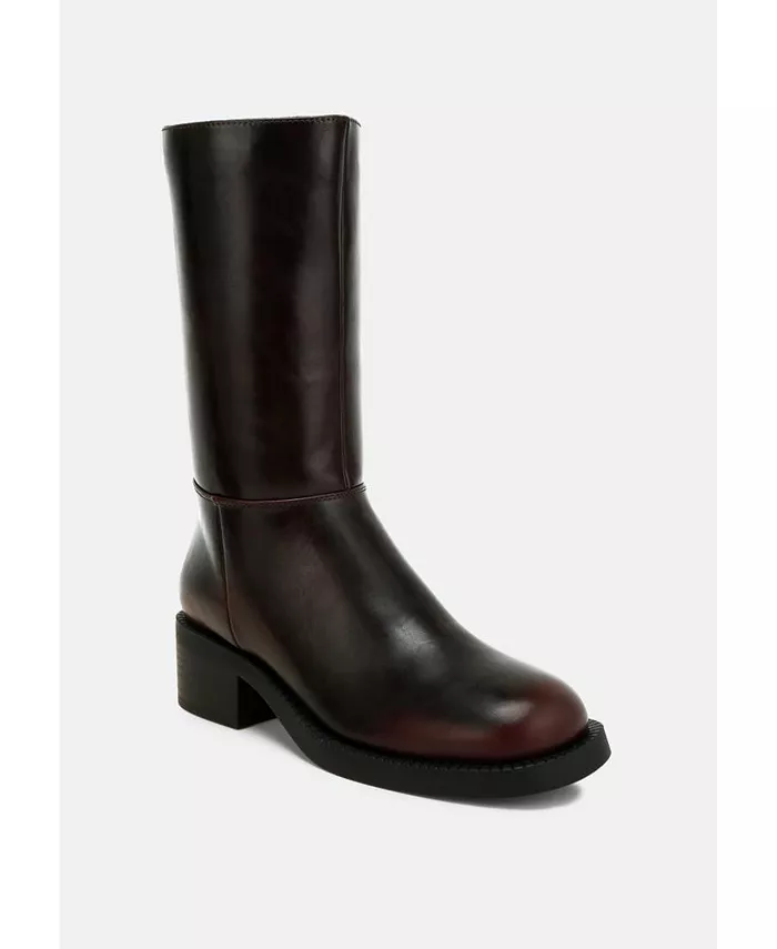 У телячьих сапог есть вневременной минималистский дизайн, что делает их довольно универсальной вещью. У телячьих сапог есть тонкие детали из панелей и низкий блочный каблук-платформа с удобными амортизирующими стельками, что обеспечивает им непринужденную посадку.
