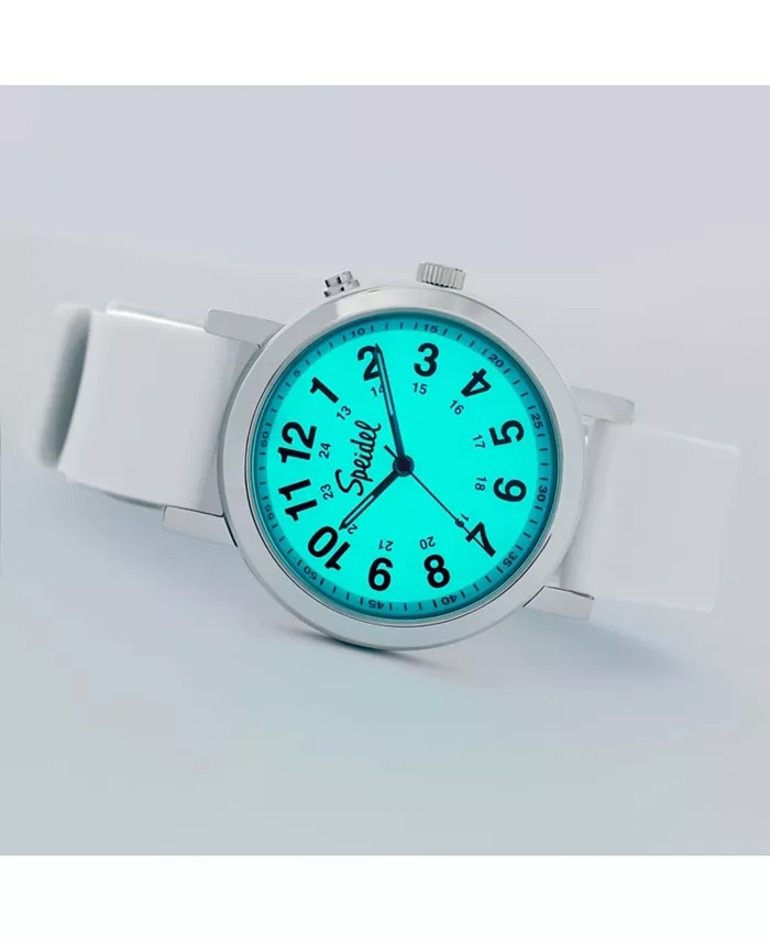 Часы Scrub Glow Watch, которые предпочитают профессионалы-медики, имеют прозрачный белый циферблат, 12/24-часовую разметку, красную секундную стрелку для точного измерения пульса. Уникальный электролюминесцентный циферблат обеспечивает четкость при тусклом свете. Эластичный силиконовый ремешок, регулируемый ремешок для комфорта. Подходит для запястий 5"-7.48