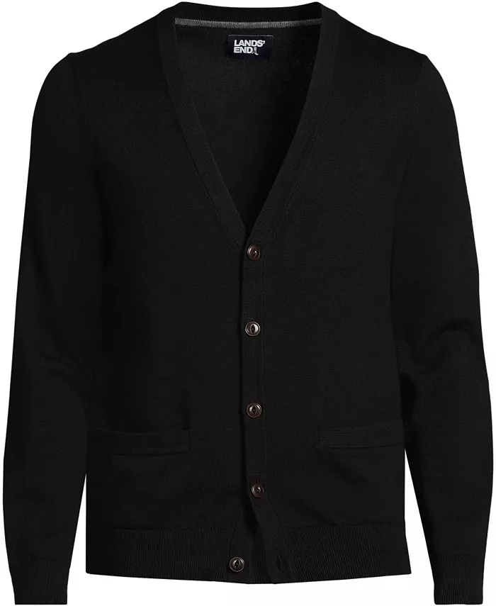 Кардиган из тонкого хлопка Big & Tall Lands' End, черный
