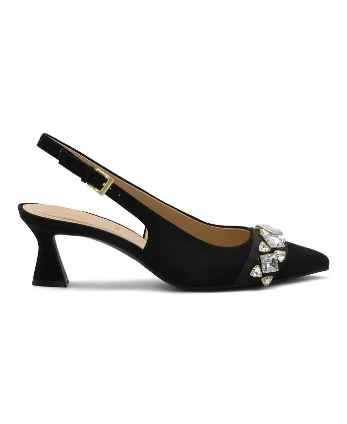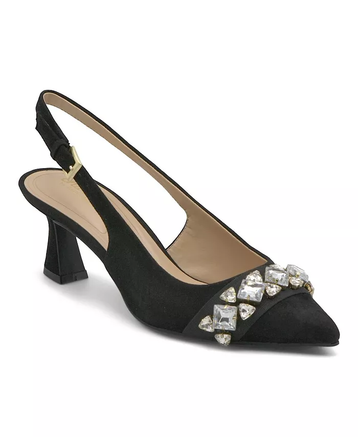 Кристаллы сверкают на этих туфлях-лодочках с открытым носком, острым носом и каблуком-рюмочкой.