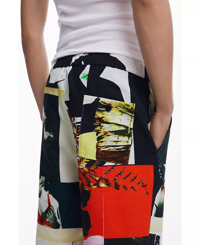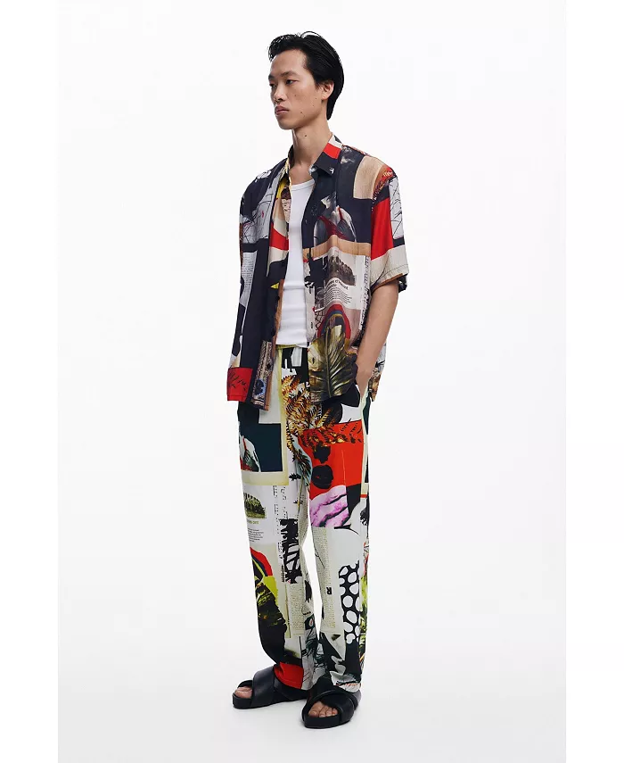 Длинные брюки прямого покроя с боковыми и задними карманами и принтом в виде открытки, разработанным месье Кристианом Лакруа.