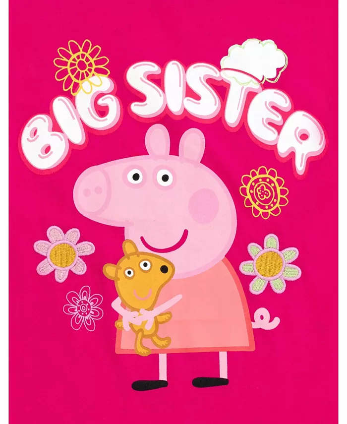 Приготовьтесь к приключениям с этой милой футболкой Peppa Pig! Выбирайте между радужным дизайном с "Birthday Magic" или цветочным принтом с "Big Sister". Мягкая, стильная и идеально подходит для игр!