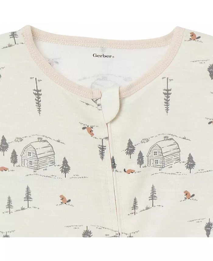 Пижама без ножек для малышей с обратной молнией, 3 шт. в упаковке Gerber, коричневый