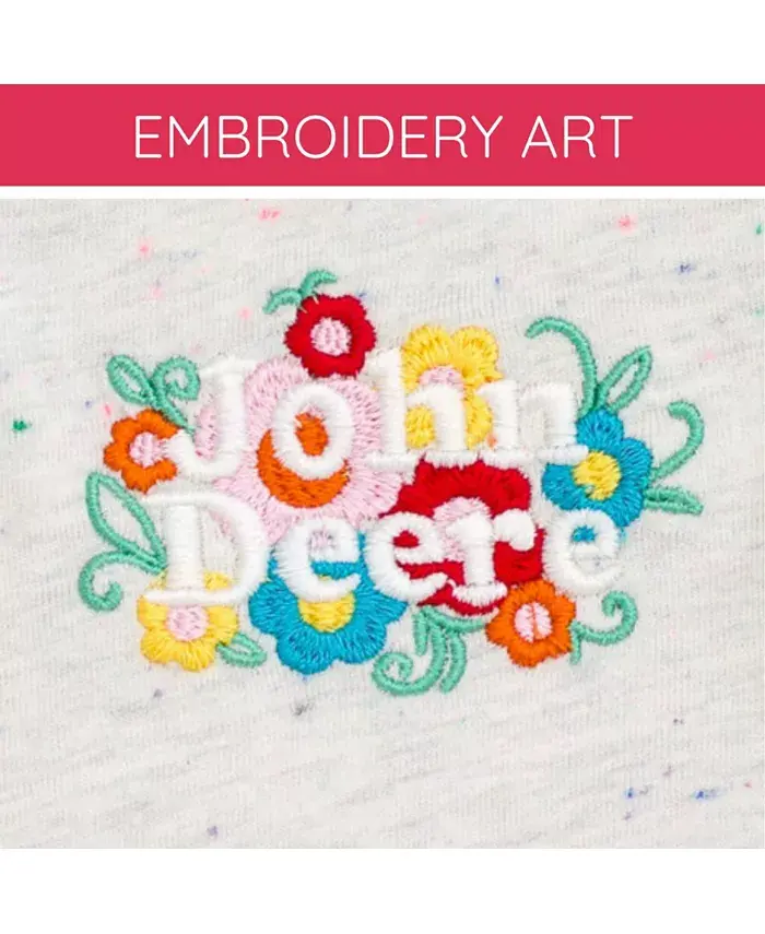 Поднимите летний стиль вашей девочки с помощью удобной футболки John Deere! Выбирайте принты лошадей, животных или фермерских рынков. Изготовлена ​​из мягкого хлопка для комфорта в течение всего дня во время игры.