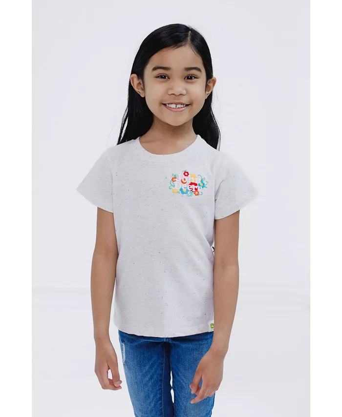 Официально лицензированная футболка John Deere с короткими рукавами и графическим принтом для девочек