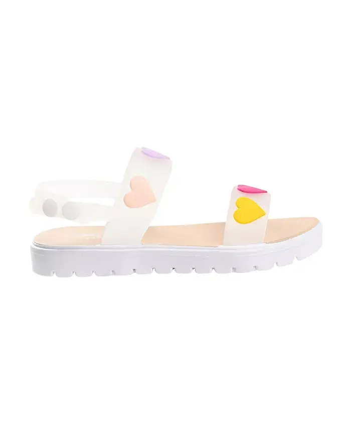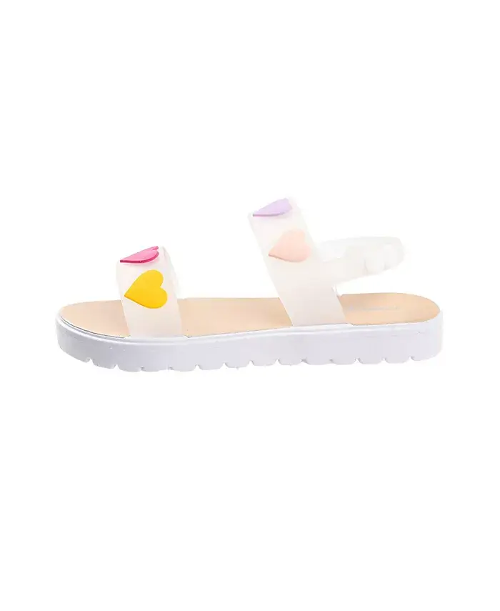 Эти милые сандалии украшены подвесками в форме сердечек для милого и игривого вида. Надежный ремешок сзади удерживает их на месте, а удобная застежка на ремешке позволяет легко надевать и снимать их. Идеально подходит для солнечных дней или прогулок.