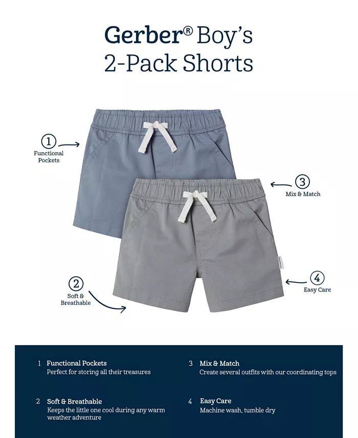Шорты для мальчиков, 2 шт Gerber, мультиколор