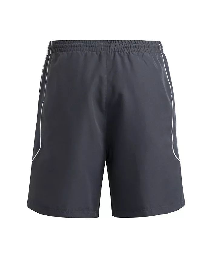 Прорезиненная графика команды Вышитый логотип бренда Эластичный пояс Боковые шпагаты Длина внутреннего шва для размера L составляет примерно 7,5 дюймов. Бренд: Адидас Два боковых кармана 66% хлопок, 34% полиэстер Можно стирать в стиральной машине