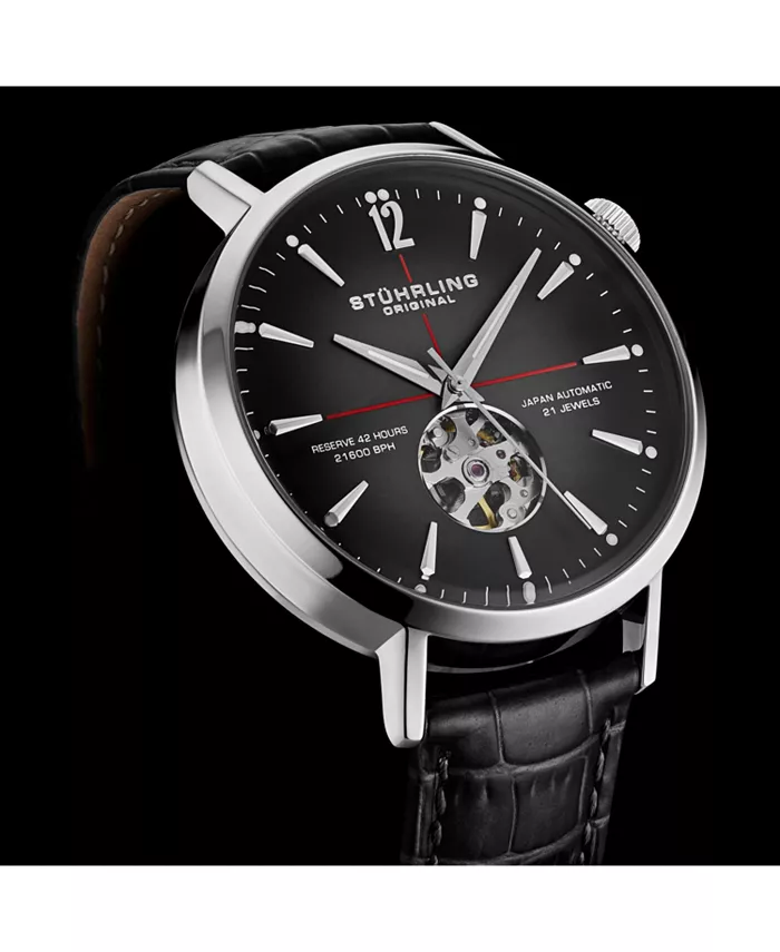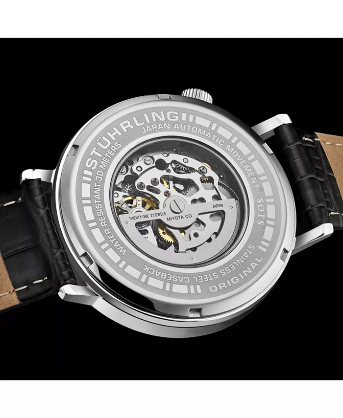Мужские часы 1021 Quasar Skeleton Automatic, 42 мм Stuhrling, черный