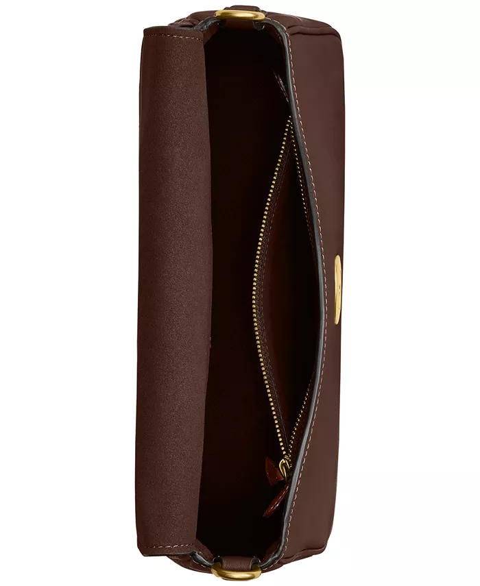 Эта сумка через плечо от COACH, выполненная из гладкой кожи с яркой латунной фурнитурой, предлагает универсальные варианты стиля благодаря съемному ремню и ручке.