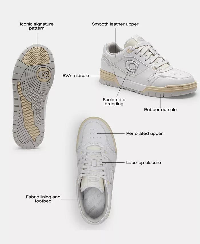 COACH выводит повседневный образ на новый уровень с помощью фирменных деталей на шнуровке в новых кроссовках SoHo с низким верхом.