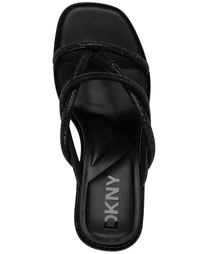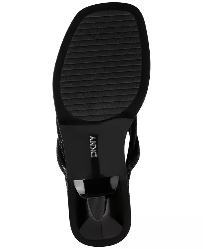 Переплетенные ремешки и квадратные мыски-ремешки создают современный образ в элегантных босоножках Rabun от DKNY.