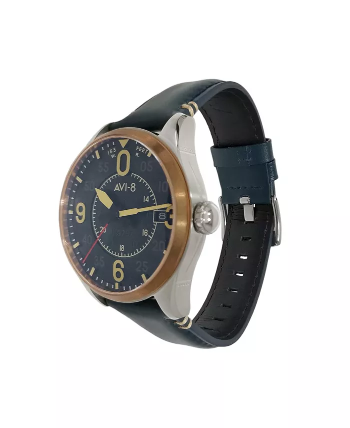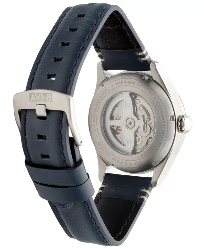Мужские часы Spitfire Smith Automatic с синим кожаным ремешком, 42 мм AVI-8