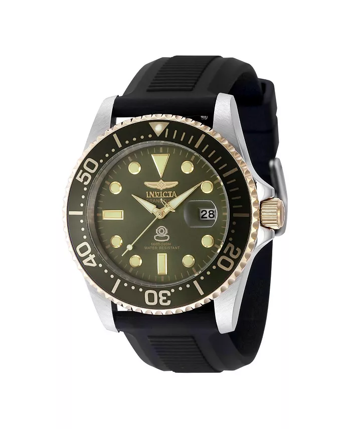 Эти прекрасные часы Invicta Pro Diver оснащены точным кварцевым механизмом в дополнение к стальному золотому корпусу. На их циферблате изображен металлический циферблат цвета «милитари-зеленый», защищенный высокопрочным минеральным кристаллом. Эти часы дополнены черным стальным браслетом и обеспечивают водонепроницаемость до 200 м. Погрузитесь в любой горизонт, следуя неуклонному руководству Invicta Pro Diver. Стильные классические внутренние механизмы выкованы с вариациями смелых движений. Созданные с уверенным мастерством, стойкость, с которой функционируют эти часы, делают Pro Diver квинтэссенцией производительности. Создавая каждые часы для свирепых сердец, часы Invicta являются образцовой демонстрацией универсальности, устанавливая прецедент для отваги самых авантюрных занятий.