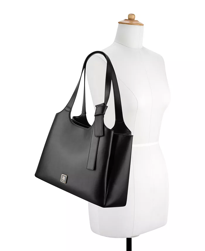Сумка-тоут Nine West Designer Lyra с функцией тройного отделения. Верхняя молния с 2 магнитными отделениями и внутренними карманами-органайзерами. Специальный брендинг с золотым и эмалевым покрытием. Вмещает ноутбук в мягком отделении и идеальная сумка для работы.