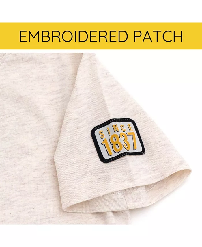 Круглый вырез горловины из трикотажной резинки Мягкий рисунок с трафаретной печатью Застежка-липучка Жаккардовая вышитая нашивка