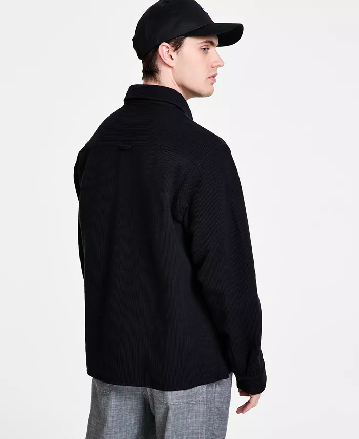 Создайте беззаботный и стильный образ, надев эту рубашку-куртку HUGO by Hugo Boss из трикотажной ткани в рубчик свободного кроя.