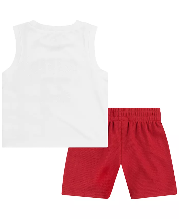 Подарите ему классический образ Jordan с самого раннего возраста с комплектом джерси Jordan 23, который включает в себя топ Jordan без рукавов и шорты-накидки. Оба предмета изготовлены из дышащей сетчатой ​​ткани и украшены фирменным логотипом Jordan 23 для классического вида.