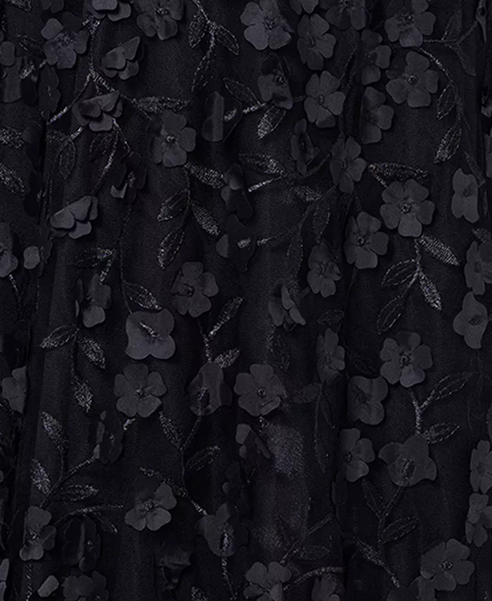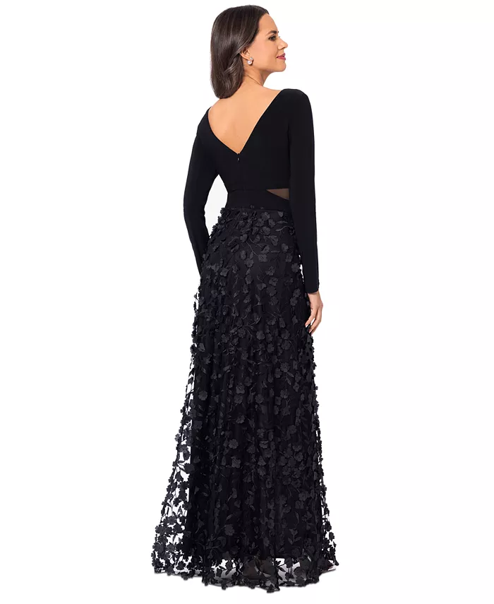 Рельефные цветы по всей юбке придают дополнительную красоту и глубину этому платью с длинными рукавами от XSCAPE, дополненному вырезами из прозрачной сетки по бокам на талии.
