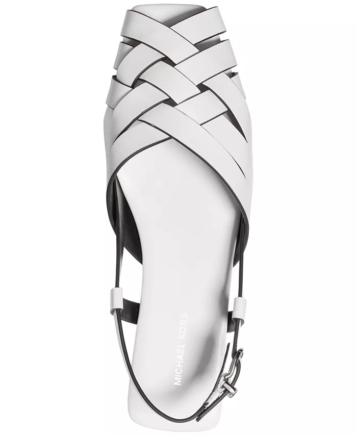 Босоножки на каблуке и плетеные мыски — идеальный вариант для теплой погоды или отдыха в удобных балетках Irene от Michael Kors.