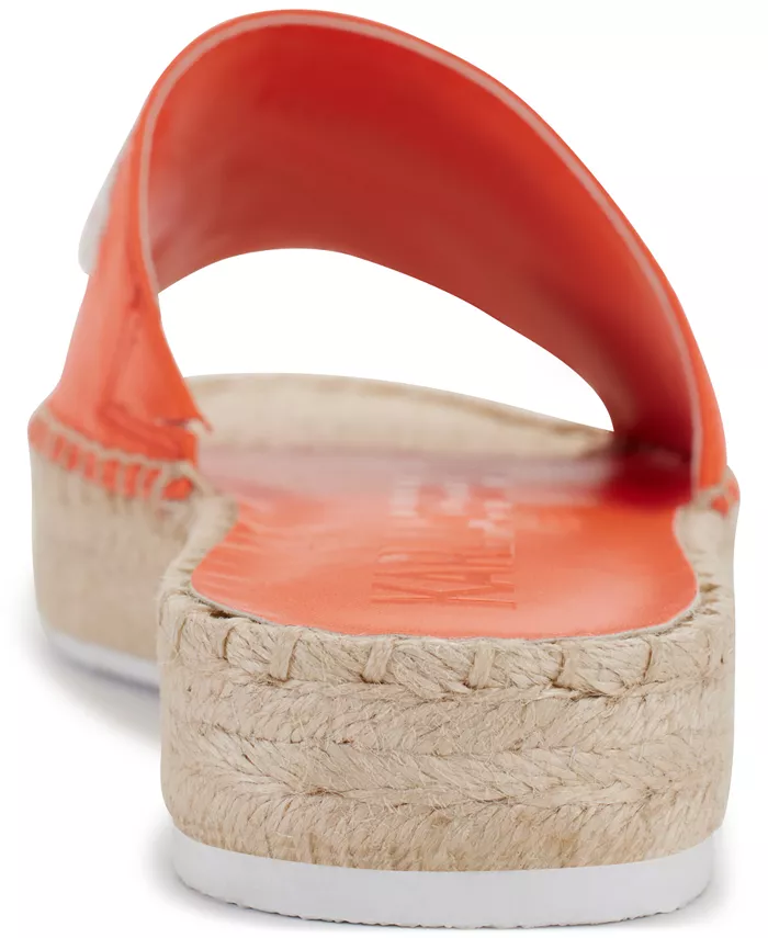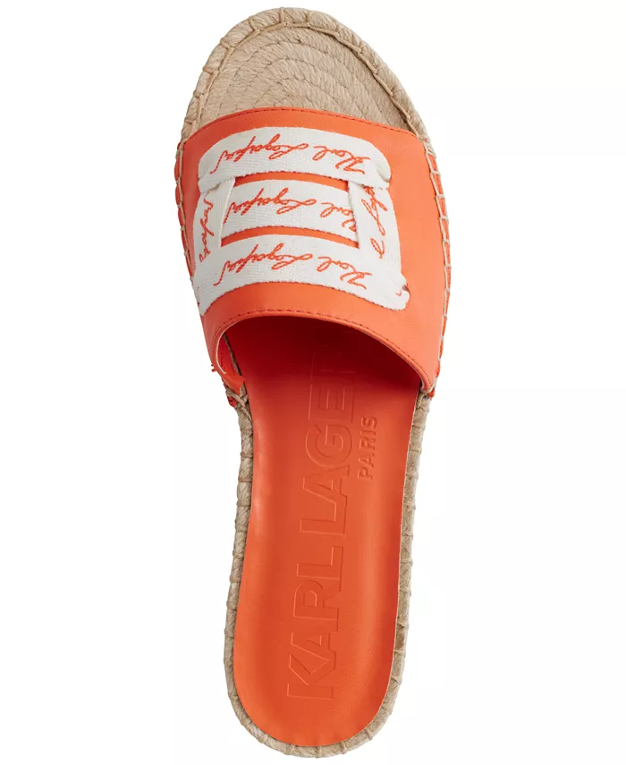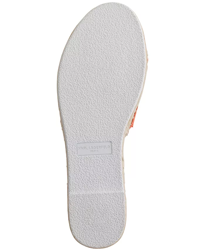 KARL LAGERFELD PARIS сочетает фирменную отделку логотипом и платформу эспадрилий в босоножках Cherie, добавляя текстурированный контраст образу для теплой погоды.
