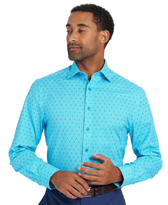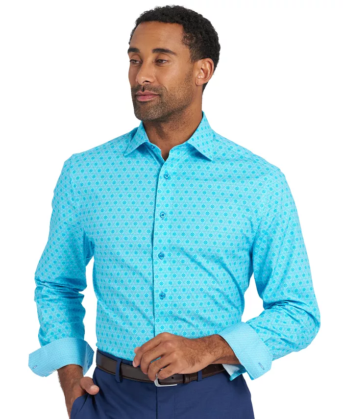 Дополните свой образ на пуговицах завораживающим узором из шестиугольных звезд, добавив в свою коллекцию рубашку из эластичного хлопка от Ника Грэма.
