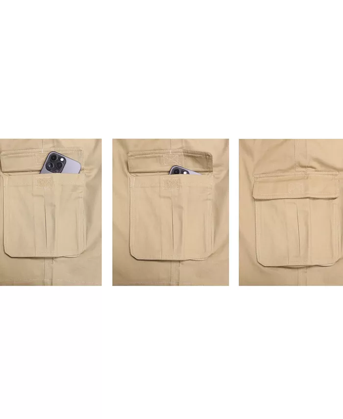 В комплект входит ремень с D-образным кольцом в тон. Современный индивидуальный покрой Внутренний шов: Размер 30-11", 32-11", 34-11", 36-11.5", 38-11.5", 40-12", 42-12" 2 боковых кармана, 2 накладных кармана, 2 задних кармана Двойной шов по низу Застежка на пуговицы Функциональная застежка-молния 3-Пакет 100% хлопок Можно стирать в стиральной машине