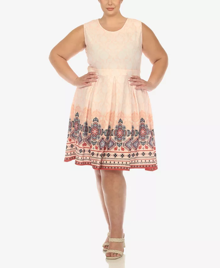 Платье приталенное с расклешенной юбкой до колена Plus Size White Mark, оранжевый