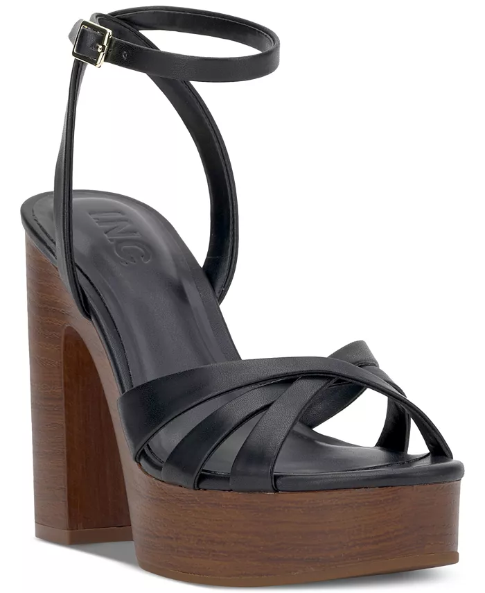 Туфли на платформе с имитацией дерева придают ретро-стиль эффектным босоножкам Jacel от INC International Concepts.